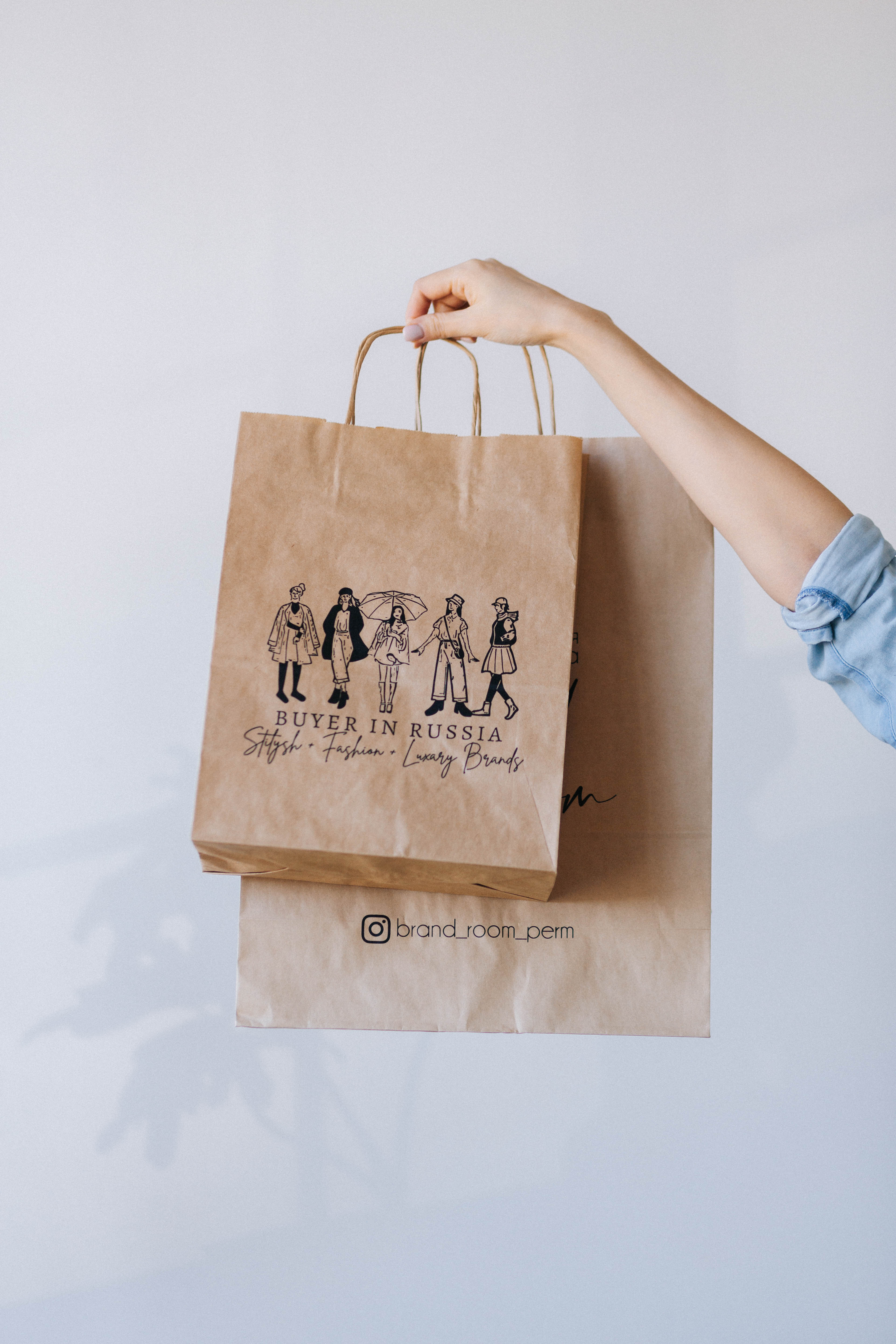 Бумажные пакеты с логотипом могут использоваться в качестве сумок-носителей для покупок и упаковки некоторых потребительских товаров.